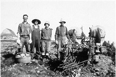 horses -- early versions of the machine were known as "horse killers." Members of the Fred Hjelm family show off their digger in these c. 1930 photographs.